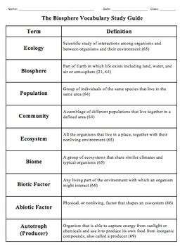 Read Online Biosphere Vocabulary Review Answer Key Biology Epub